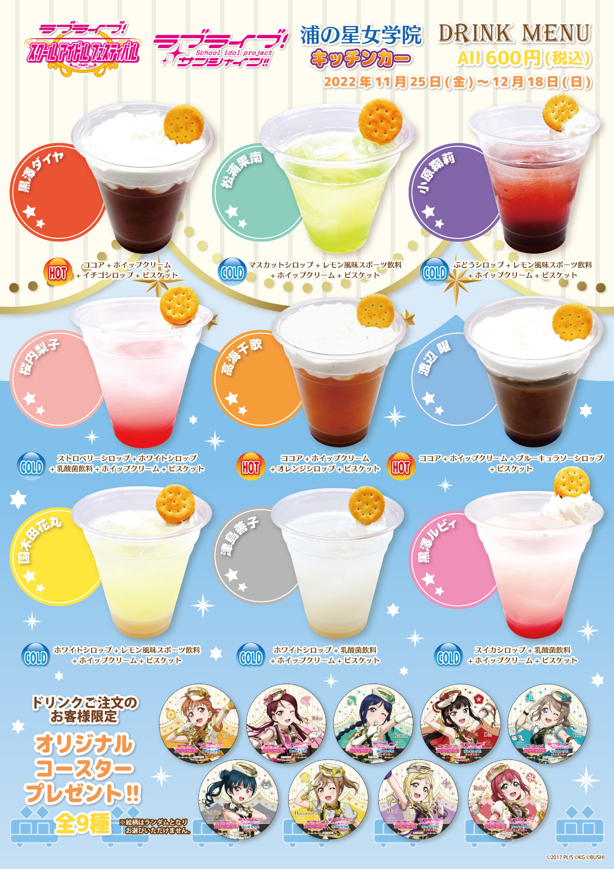 ※第二弾以降は店舗Twitter(https://twitter.com/characafeodaiba)にて順次お知らせいたします。