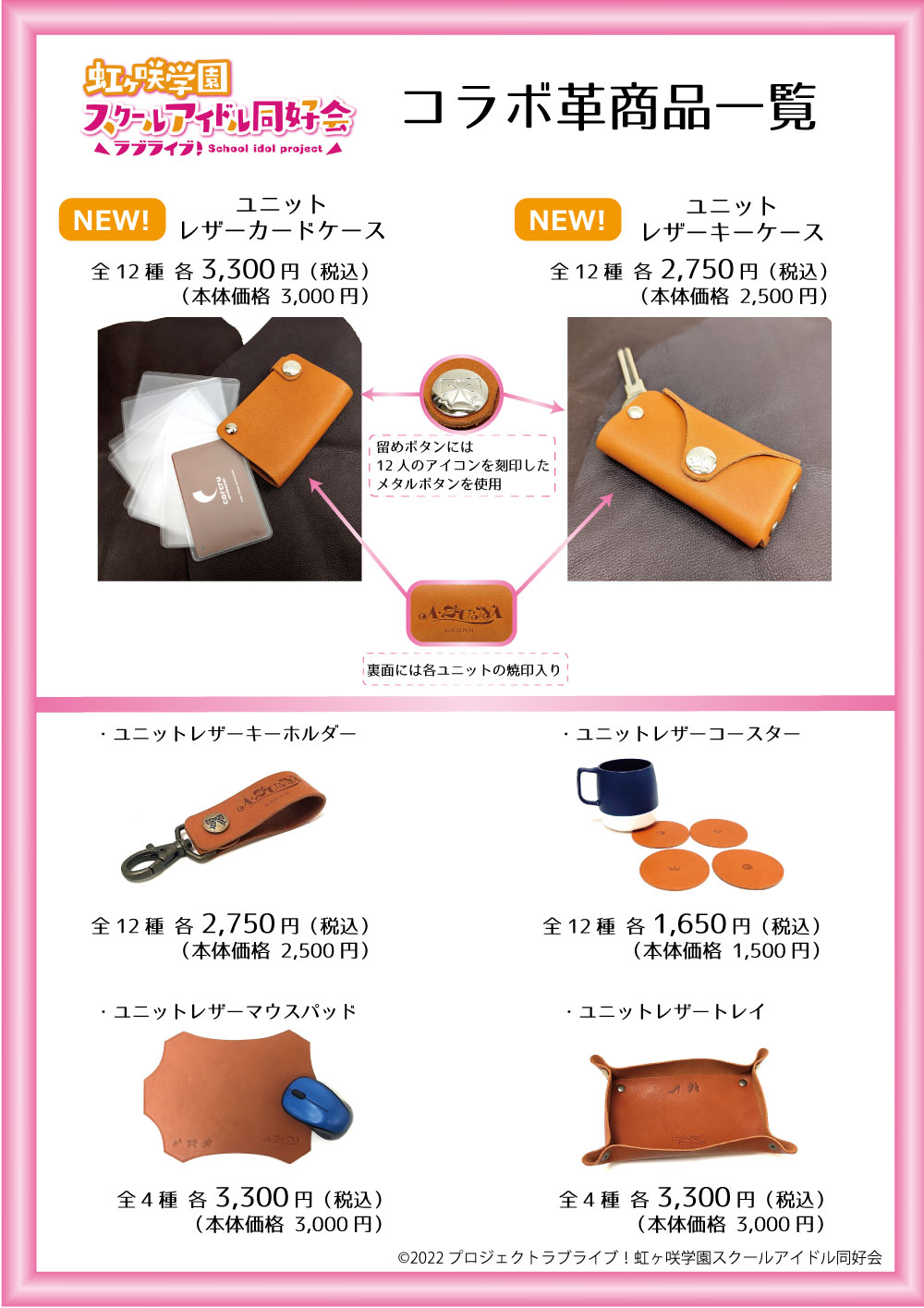 カルクルより「ラブライブ!虹ヶ咲学園スクールアイドル同好会」コラボオーダーメイドレザーグッズ受付の開催と新商品のお知らせ
