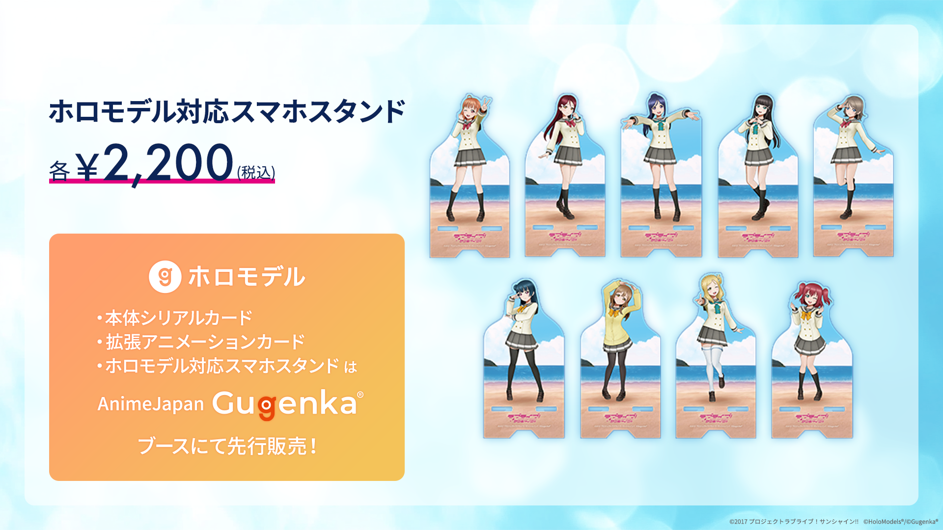 AnimeJapan 2025にて、Aqoursメンバーのホロモデル本体シリアルカード、拡張アニメーションカード、ホロモデル対応スマホスタンドを販売!