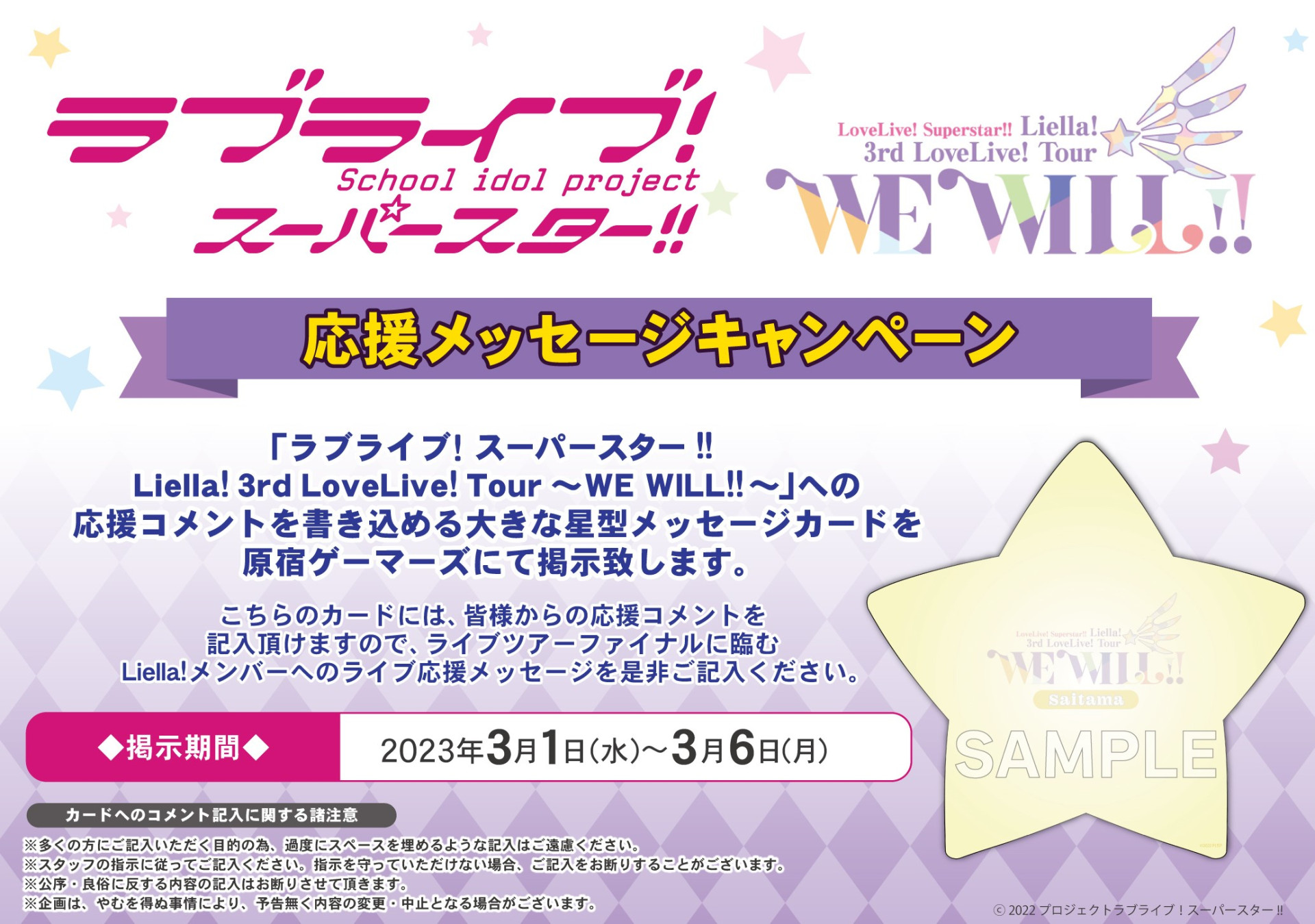 ゲーマーズより、「ラブライブ!スーパースター!! Liella! 3rd LoveLive! Tour ~WE WILL!!~」埼玉公演 応援メッセージキャンペーンのお知らせ